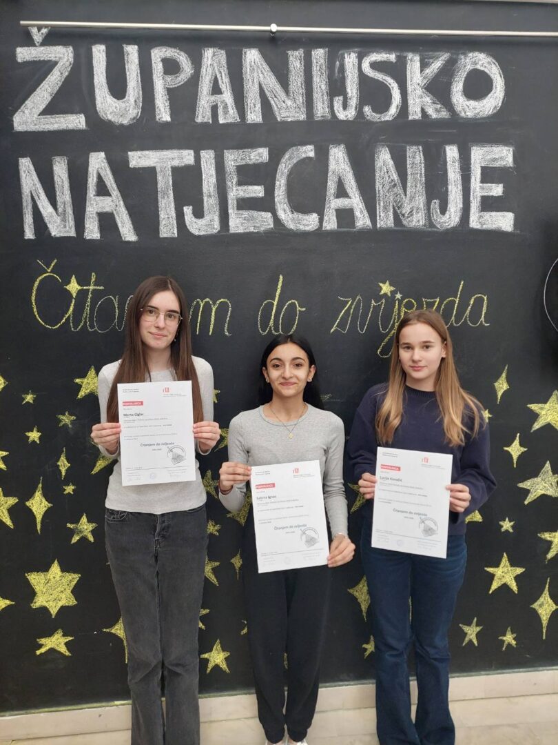 U II. osnovna škola Čakovec održano je županijsko natjecanje za osnovne škole „Čitanjem do zvijezda“, koje već tradicionalno organizira Knjižničarsko društvo Međimurske županije. Riječ je o nacionalnom projektu Čitanjem do zvijezda čiji je cilj potaknuti djecu i mlade na čitanje kao temelj znanja, obrazovanja i osobnog razvoja. Na županijskom natjecanju sudjelovale su učenice osmoga razreda Marta Ciglar, Sabina Ignac i Lucija Kovačić, pod mentorstvom školske knjižničarke Paule Štefan. U konkurenciji brojnih ekipa učenice su osvojile 6. mjesto. Učenice su izrazile zadovoljstvo postignutim rezultatom jer su ove godine ostvarile bolji uspjeh nego prošle godine, što je dodatna motivacija za njihov daljnji rad i čitanje. Čestitamo učenicama na uspjehu i želimo im još mnogo pročitanih knjiga i lijepih rezultata!