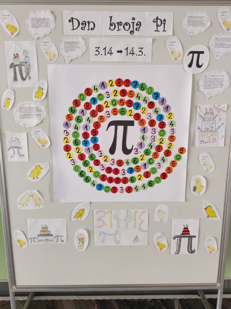 Tim su povodom naši učenici na kreativan način uredili školski pano i obilježili ovaj zanimljiv matematički dan.