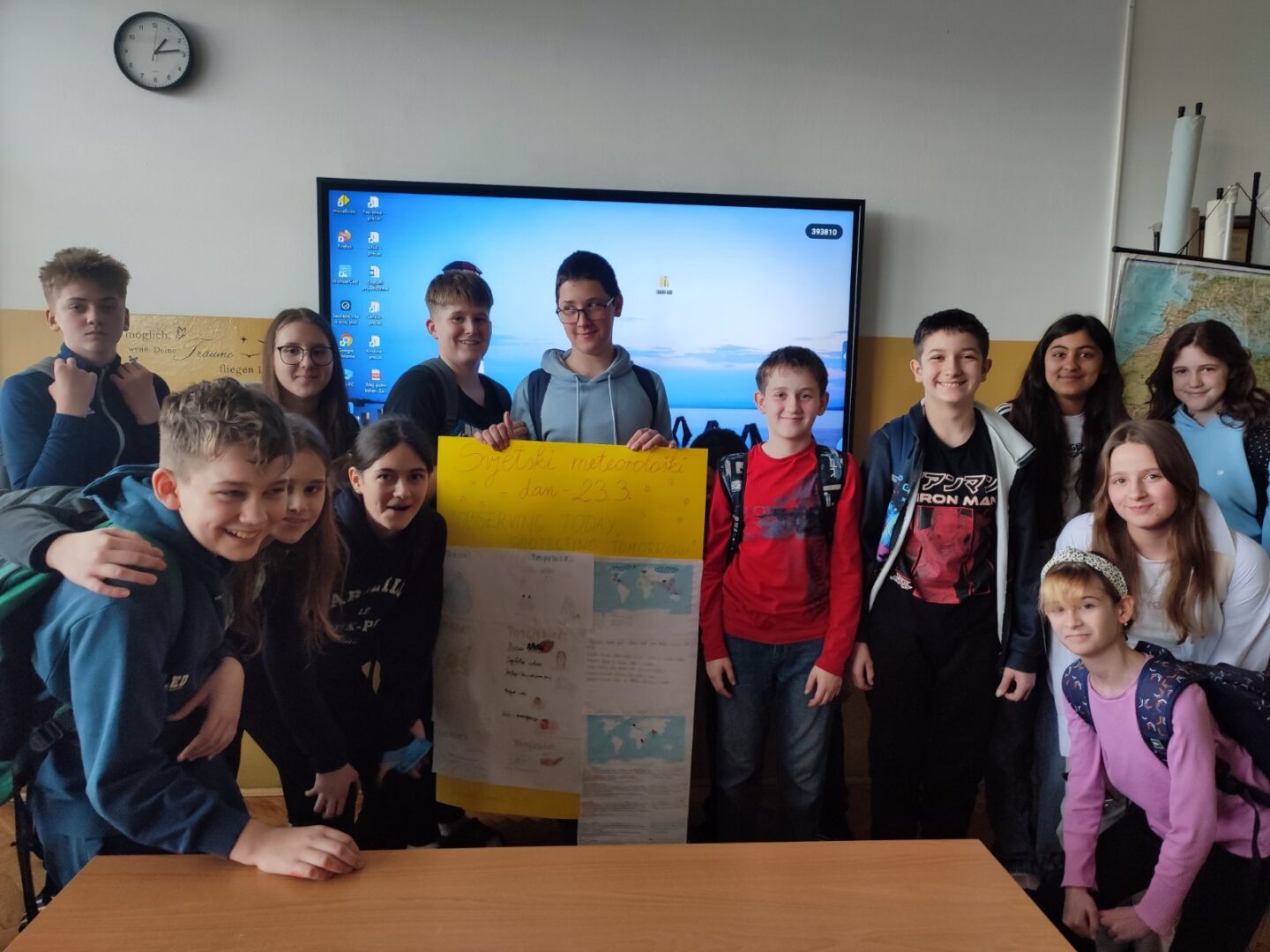 Kako se naši šestaši često susreću s temama klime i vremena, obilježili su ovaj datum na satu geografije: istraživali i locirali ekstremne vremenske pojave na karti svijeta, povezivali uzroke i posljedice raznih vremenskih utjecaja, promišljali o utjecaju vremenskih prilika na život ljudi diljem Zemlje.