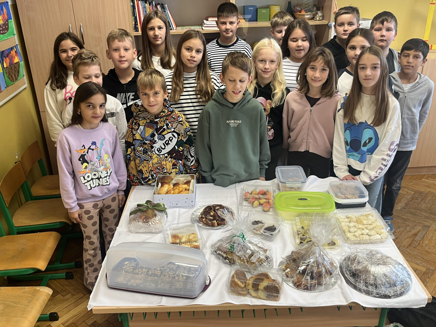Učenici 4.a i 4.b razreda naše škole zajedno s učiteljicama Marijom Jelenić i Blaženkom Palatinuš ove školske godine sudjeluju u projektu Tragovi djetinjstva i domaće kuhinje koji je uvršten na popis Udruge hrvatskih učitelja razredne nastave Zvono. Dan zahvale za plodove zemlje bio je prava prigoda za provođenje prve aktivnosti u okviru ovog projekta. Učenici su zajedno sa svojim bakama, mamama, tetama pripremili kolače i kruh prema nekadašnjim receptima iz njihovih obitelji te ih ponosno donijeli u školu, prezentirali način pripreme i naravno na kraju se počastili svim tim delicijama. Za sve pripremljene kolače učenici su priložili „starinske“ recepte kojima će uz pomoć učiteljica izraditi razrednu kuharicu. Toga dana razredom se širio miris kolača i domaćeg kruha koji će učenicima ostati u trajnom sjećanju.