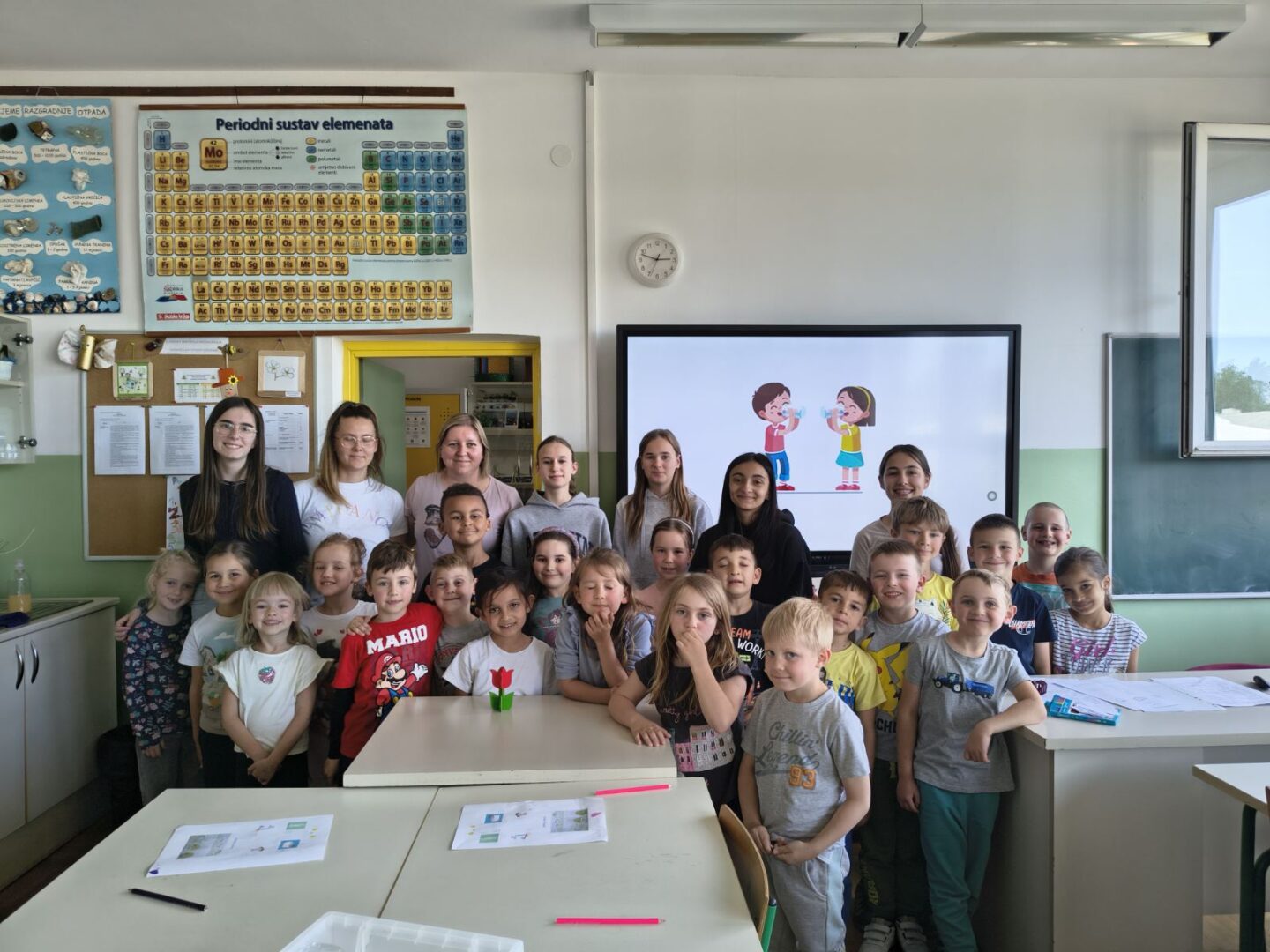 Dana 27. travnja 2026. godine našu je školu posjetila skupina predškolaca „Iskrice“ iz Dječjeg vrtića Potočnica s tetama Rosanom Markač i Paulom Pintarić te psihologinjom Korinom Dominić. Polaznice Dodatne nastave iz Kemije Marta Ciglar, Sabina Ignac, Julija Kovačić, Lucija Kovačić i Sara Marušić s učiteljicom Oliverom Šercer-Žokalj priredili su im poučnu i zabavnu radionicu „Voda znači život“. Mališani su mikroskopiranjem istražili život u kapljici vode te su izvođenjem pokusa upoznali neobična svojstva vode i kako se voda može pročistiti. Djeca su kroz razgovor i rješavanjem radnog listića pokazala bogato znanje o važnosti vode za život i kako se voda može štedjeti. Radionicu smo završili zajedničkim fotografijama i razmjenom samostalno izrađenih poklončića. Veselimo se nastavku suradnje. (Olivera Šercer-Žokalj)