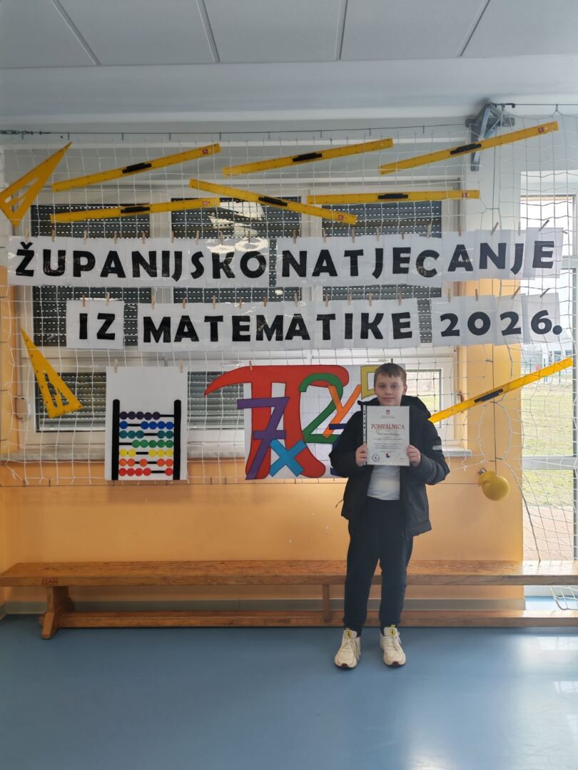 Dana 24. veljače 2026. učenik 5.b razreda Dorijan Kocijan sudjelovao je na Županijskom natjecanju iz matematike koje je održano u Osnovna škola Vladimira Nazora Pribislavec.